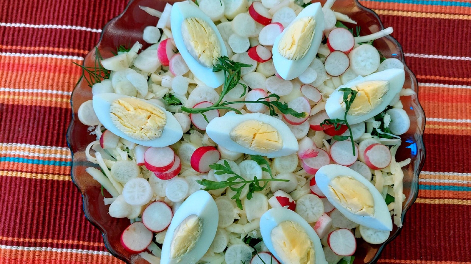 Зелёный салат с сочной молодой редиской, Летняя свежесть в каждой ложке.