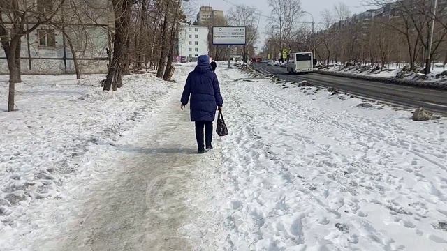 Тротуар по улице Панфиловцев в Южном микрорайоне Хабаровска представляет собой труднопроходимую штурмовую полосу - из-за того что не убирался с ноября прошлого года. Как результат - он на всём протяжении покрыт коркой льда. Приходится идти очень осторожно, согнувшись в три погибели - чтобы не поскользнуться, не упасть и не получить травму. Ничего не поделаешь - живём в "городе, в котором хочется жить!" Да ещё и в "самом благоустроенном в ДФО" и деваться нам некуда. Правда мэр тут намедни сказал, что будет всё хорошо, не уточнив при этом - у кого и когда. Четверг 29 февраля 2024 г. Время - 13:30