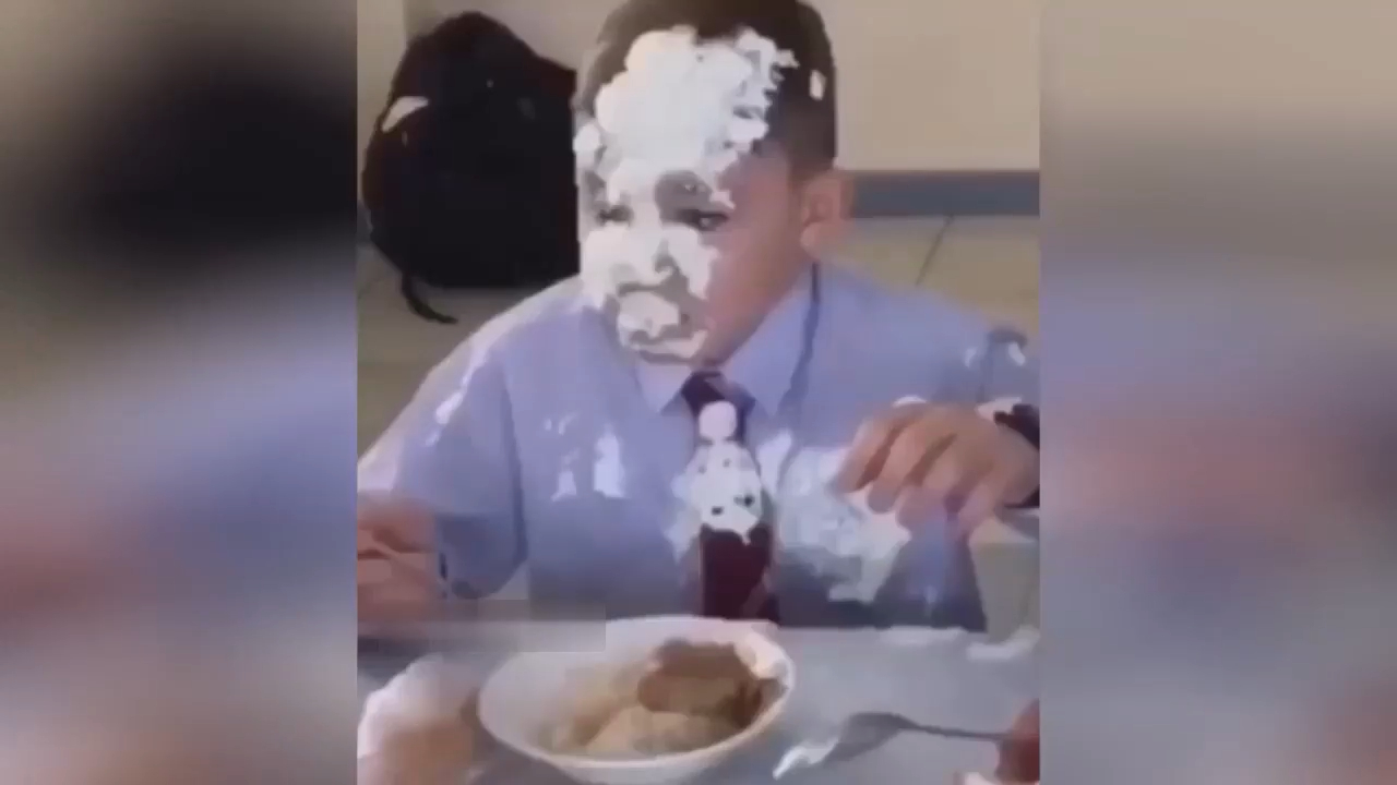 Мальчику в школьной столовой попали случайно тортом в лицо. #прикол #фейл #дети #торт