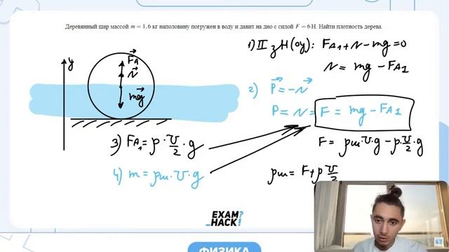 Деревянный шар массой m 16 кг наполовину погружен в воду и давит на дно с силой F 6 Н - 31311