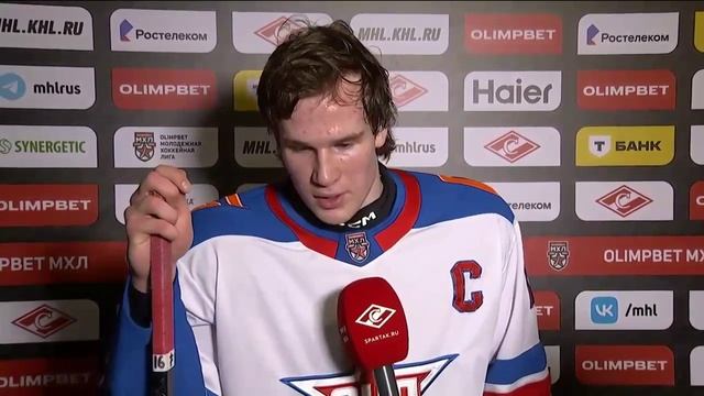 Интервью Ивана Корнилова капитана молодежного хоккейного клуба СКА1946 в матче со Спартаком