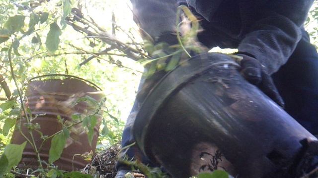Вытряхиваю использованную землю из садоводческих горшков