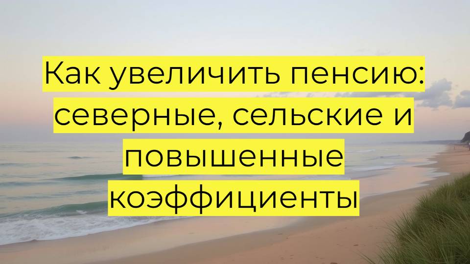 Хотите знать, как увеличить пенсионные коэффициенты и размер пенсии в 2025 году? В этой статье разбираем все законные способы: северные надбавки, сельские льготы и повышенные коэффициенты за отсрочку выхода на пенсию. Узнайте, как северный стаж повышает фиксированную выплату, какие льготы даёт сельский стаж и насколько можно увеличить пенсию, если выйти на неё позже. Мы расскажем, как оформить надбавки, даже если вы уже переехали, и какие документы нужны для перерасчета. Не упустите то, что положено вам по праву – читайте и действуйте! #пенсия #надбавки #северныйстаж #сельскийстаж #коэффициенты #фиксированнаявыплата #КрайнийСевер #социальныельготы #выплаты #пособия #пенсионныебаллы #перерасчет #госуслуги #отсрочкапенсии #пенсия2025 #льготы #соцподдержка #пенсионеры #деньги #финансы #закон #государство #накопления #страховаяпенсия #соцзащита Обязательно подписывайтесь на наши соц.сети "Пенсия Информ Пособие Льготы". ✅ Telegram - https://t.me/pensioninform Вконтакте - https://vk.com/pensioninform