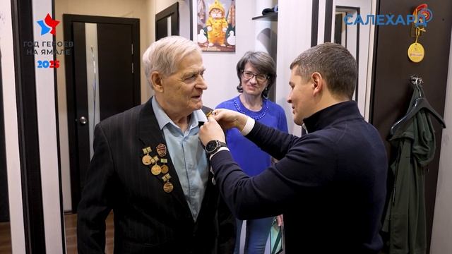 Символ глубокой благодарности и уважения к тем, кто приближал Великую Победу Губернатор ЯНАО Дмитрий Артюхов и глава Салехарда Алексей Титовский навестили труженицу тыла Веру Васильевну Пономареву и блокадника Федора Ивановича Риттера. Ямальским ветеранам торжественно вручили медали «80 лет Победы в Великой Отечественной войне 1941-1945 годов». Напомним, что юбилейная награда учреждена 2 сентября 2024 года указом Президента РФ. Первым на Ямале ее получил фронтовик Николай Тимофеевич Шакуров. Сегодня ветераны, пережившие все тяготы войны являются образцом мужества и силы характера для ямальских бойцов, защищающих интересы нашей страны в зоне СВО.
