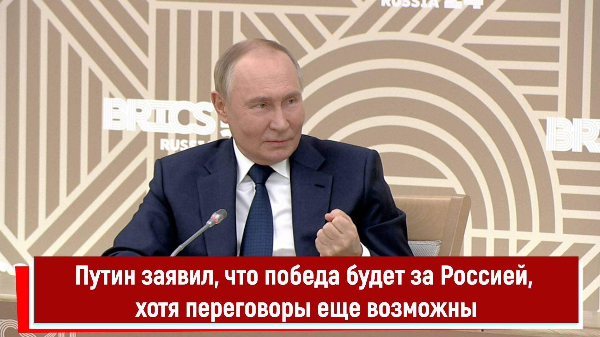 Путин заявил, что победа будет за Россией, хотя переговоры еще возможны. Президент России провел встречу с журналистами из стран БРИКС. Путин сообщил, что Россия готова к переговорам, но готова и к продолжению СВО на Украине. Все будет зависеть от позиции западных стран. Они осознали, что победить Россию в военном конфликте невозможно