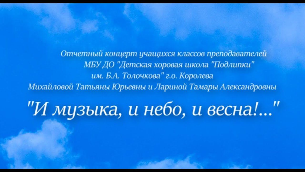 «И музыка, и небо, и весна» - концерт, подготовленный и исполненный дома с открытым сердцем и с любовью учащимися классов фортепиано и сольного пения преподавателей «Детской хоровой школы «Подлипки», Т.А. Лариной и Т.Ю. Михайловой.