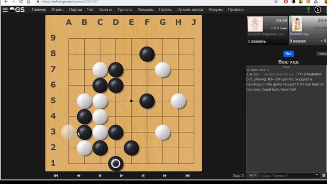 Игра против слабого бота на 9х9