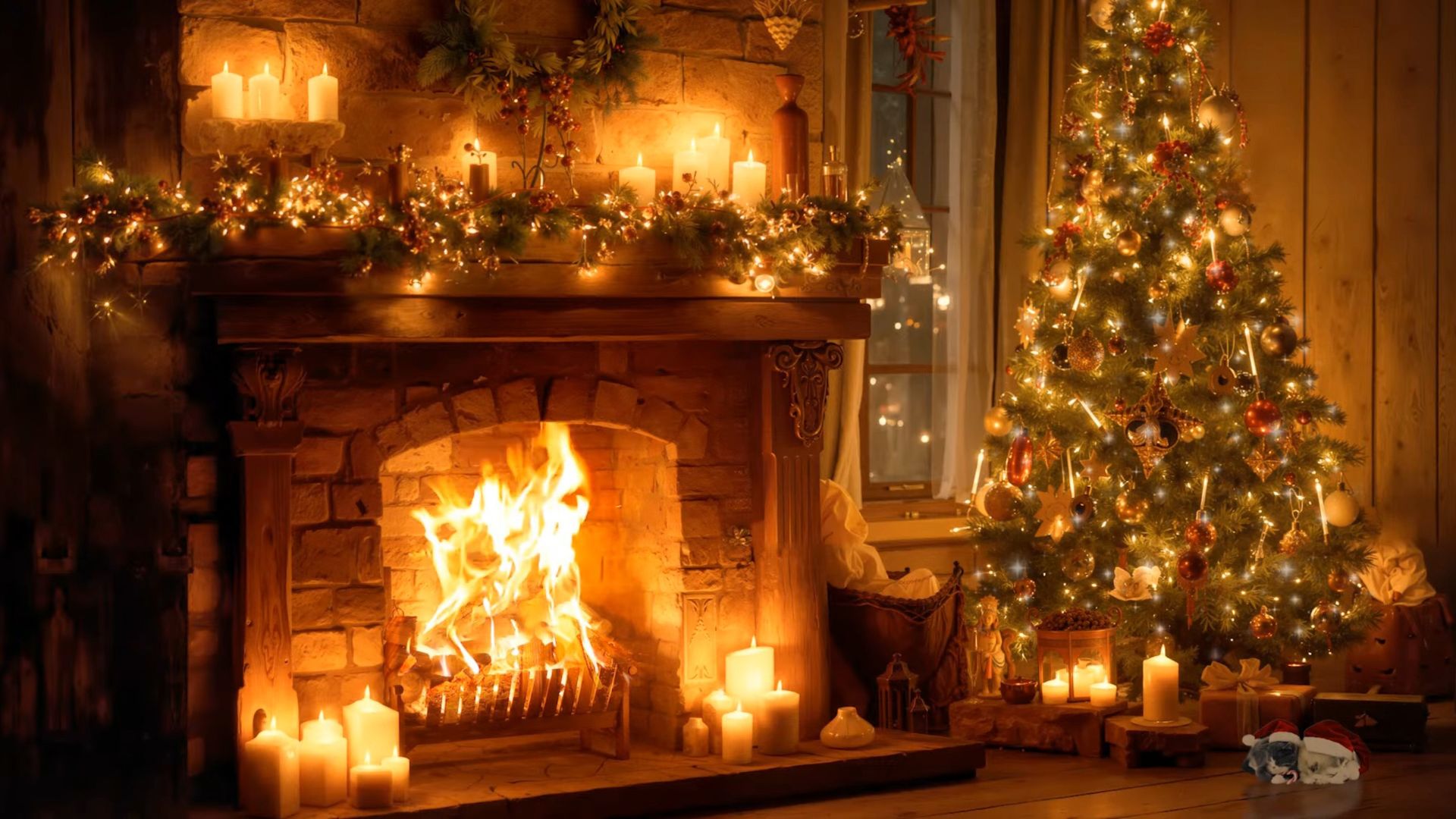 🔥🕯️ Тёплый Джаз и Новогодний КАМИН и огни ёлки | Спокойный зимний вечер