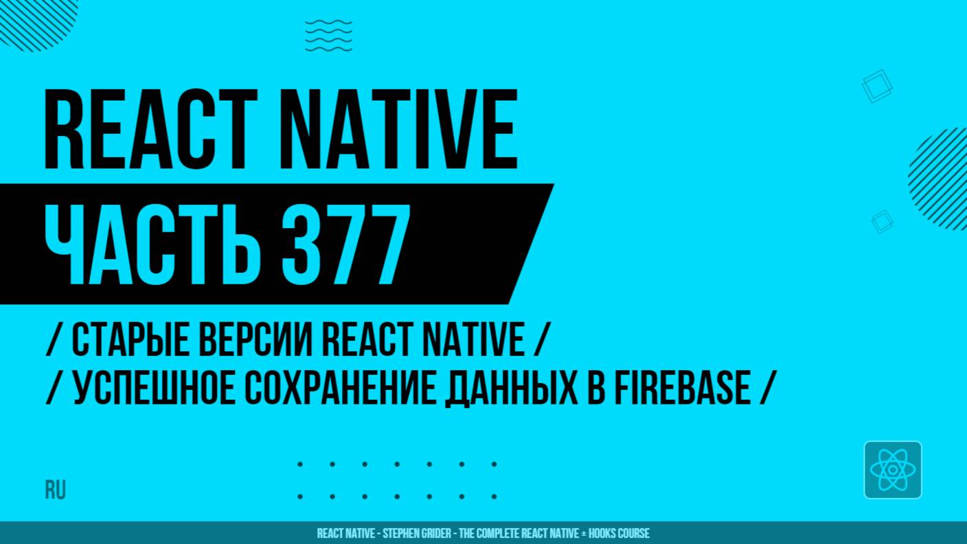 React Native - 377 - Старые версии RN - Успешное сохранение данных в Firebase