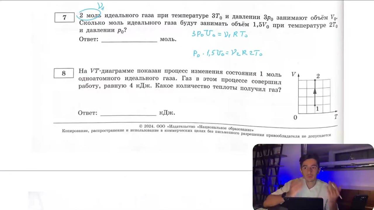 2 моль идеального газа при температуре 3Т0 и давлении 3р0 занимают объём V0. Сколько моль - №