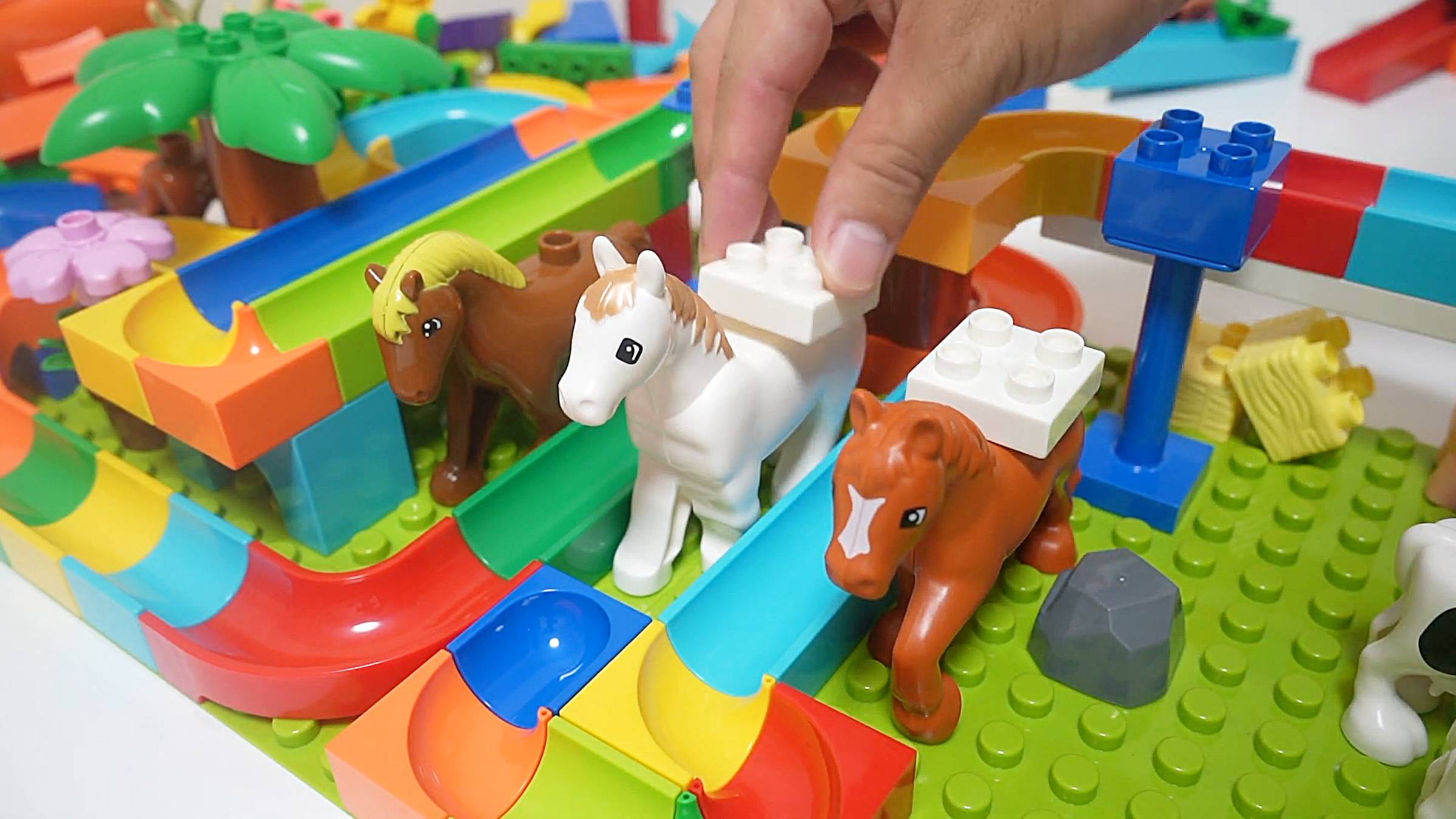 Развивающие детские игрушки. Строим горку для гонки шариков. Лего. Учим животных