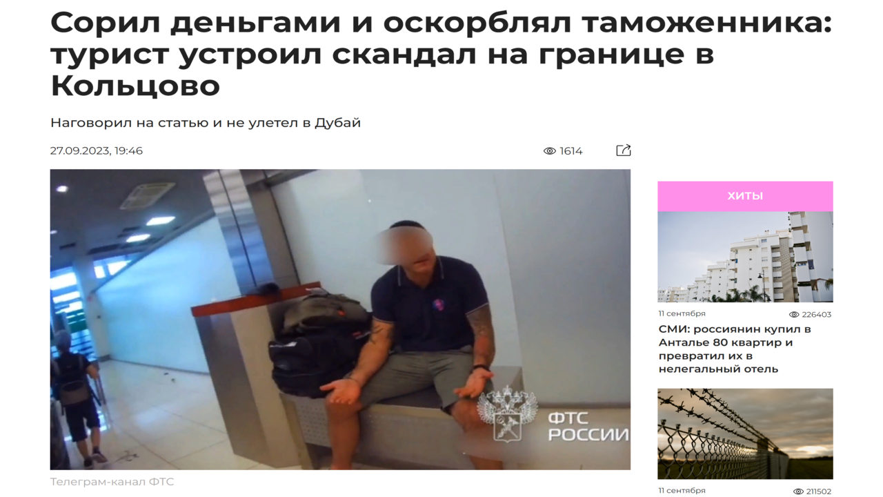Новости туризма 27/09/2023 Сорил деньгами и оскорблял таможенника турист устроил скандал #туризм