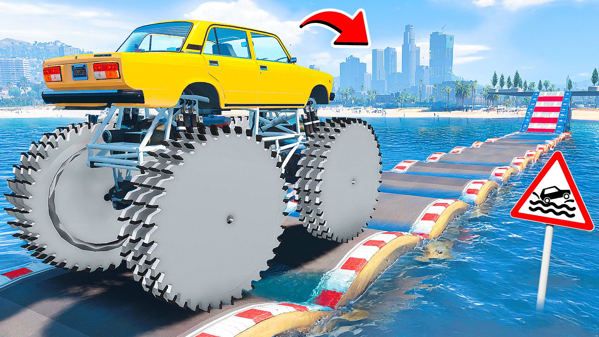 ПРОЕХАЛ ВОДНЫЕ КОЧКИ на ГИГАНТСКОЙ СЕМЕРКЕ на ПИЛАХ в ГТА 5 МОДЫ - ЭКСПЕРИМЕНТЫ в GTA 5 MODS