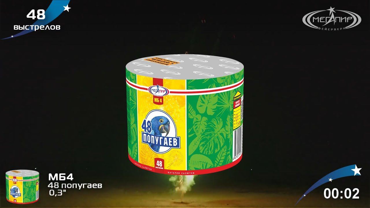 Батарея салютов Мегапир 48 попугаев МБ4