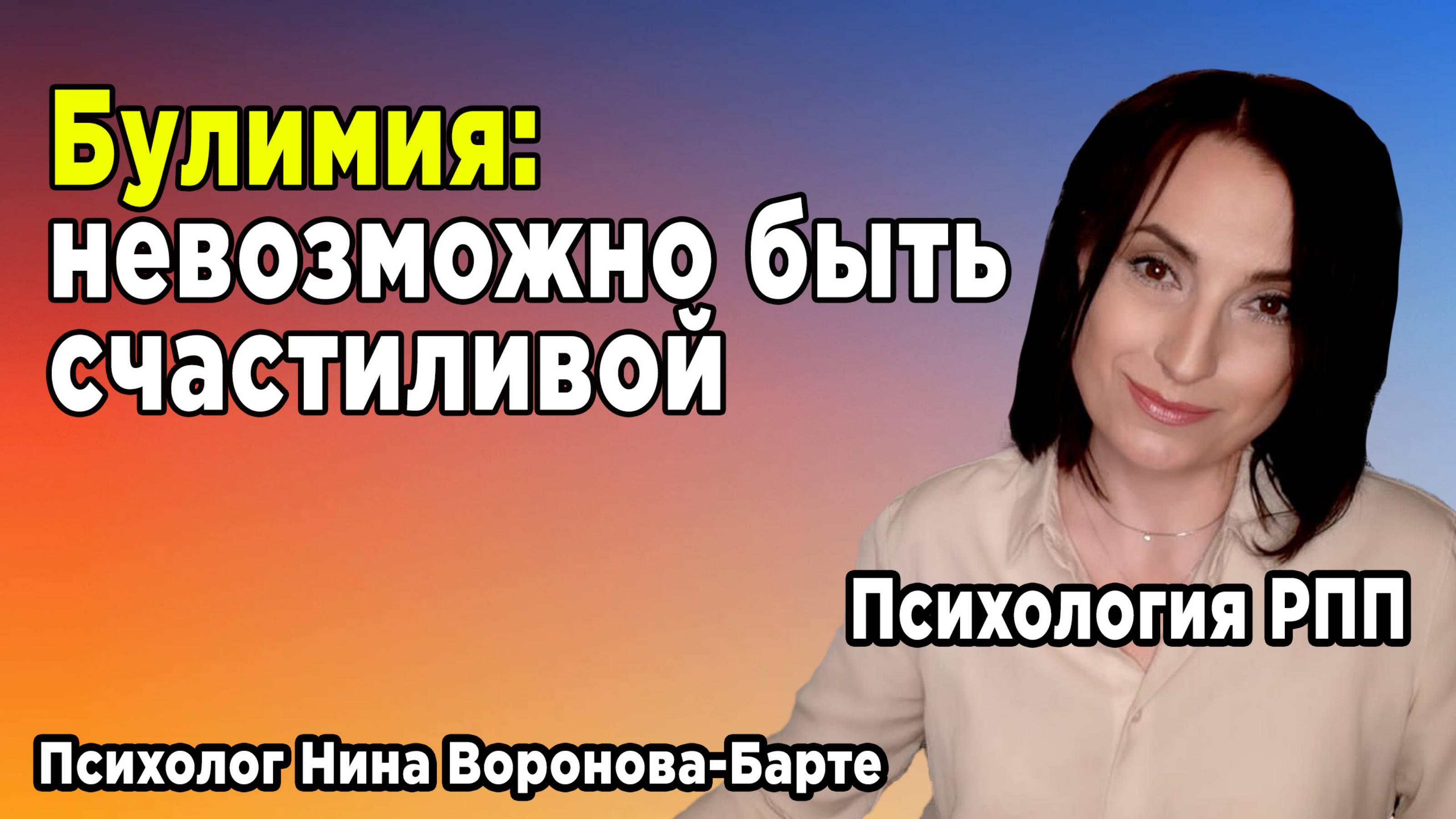 Люди с булимией никогда не довольны тем, что есть. Им всегда мало, и даже когда происходит что-то хорошее, они всегда найдут из-за чего растроиться. Почему это так и что с этим делать, рассказываю в этом видео. Что внутри: 00:00 – О чем это видео? 02:55 – Как проявляется в жизни невозможность быть счастливой? 08:08 – Биологические причины; 18:26 – Социальные причины; 23:51 – Что делать? Предназначено для людей с анорексией, булимией, компульсивным перееданием и другими РПП, а также психологов. Альтернативные каналы с моими видео: ВК Видео https://vk.com/video/@id708843242 Дзен: https://dzen.ru/id/61785f6ac7eecc20cf1af808 Если вы хотите читать мои статьи, если вам нужна поддержка или психологическая помощь, подписывайтесь на меня в социальных сетях: https://vk.com/id708843242 Дзен: https://dzen.ru/id/61785f6ac7eecc20cf1af808 Телеграмм-канал для людей с РПП: https://t.me/bulimia_anorexia_ninavoronova #булимия, #РПП, #анорексия, #психолог, #психология, #подкаст, #bulimia, #anorexia, #bingeeating, #eatingdisorder, #psychology, #psychotherapy, #podcasts