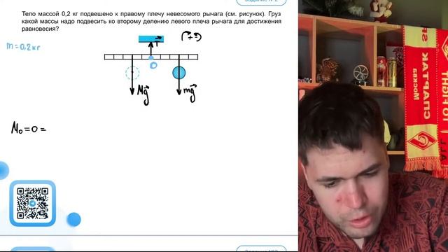 Тело массой 0,2 кг подвешено к правому плечу невесомого рычага (см. рисунок). Груз - №21882