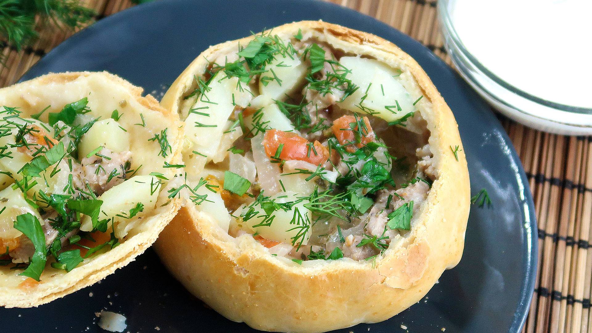 Жаркое из свинины в съедобном горшочке