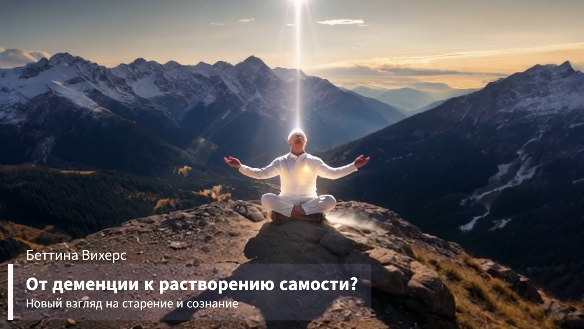«От деменции к сознательному растворению „я“? Новый взгляд на старение и сознание» — это экспериментальная совместная работа • Беттины Вихерс, трансперсонального геронтолога и специалиста по деменции (а точнее — были взяты ее идеи, опыт и исследования о деменции и растворении «я»), • Грегора Гайсмана, который придумал «скормить» ИИ некоторые ее тексты и поручить ему создать из них подкаст, • и интегрального исследователя Романа Ангерера, который перевел и расширил оригинальную версию, предоставленную Грегором, и превратил ее в видео с изображениями и небольшими кинофрагментами. В коллаборации с Евгением Пустошкиным был сделан машинный перевод содержания видео на русский язык. В целом, это удачное и яркое введение в мысли и тезисы Беттины о некоторых аспектах трансперсональной геронтологии в связи с деменцией. Для более глубокого понимания рекомендуем другие видео на ее канале: https://www.youtube.com/watch?v=STBwMez_Q1c — в этой беседе с основателем университета Ubiquity Джимом Гаррисоном (на английском языке) она рассказывает об истории своих исследований деменции и собственном опыте. Для получения дополнительной информации, включая беседы и семинары с ней, посетите ее сайт: https://www.bettinawichers.de