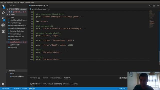 Hep Birlikte Python Öğrenelim [3] Print Fonksiyonu Sep ve End Parametreleri