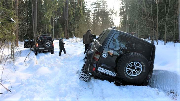 Зимняя покатушка 5ть Патриотов на цепях и без, снежный оффроад Пирамида