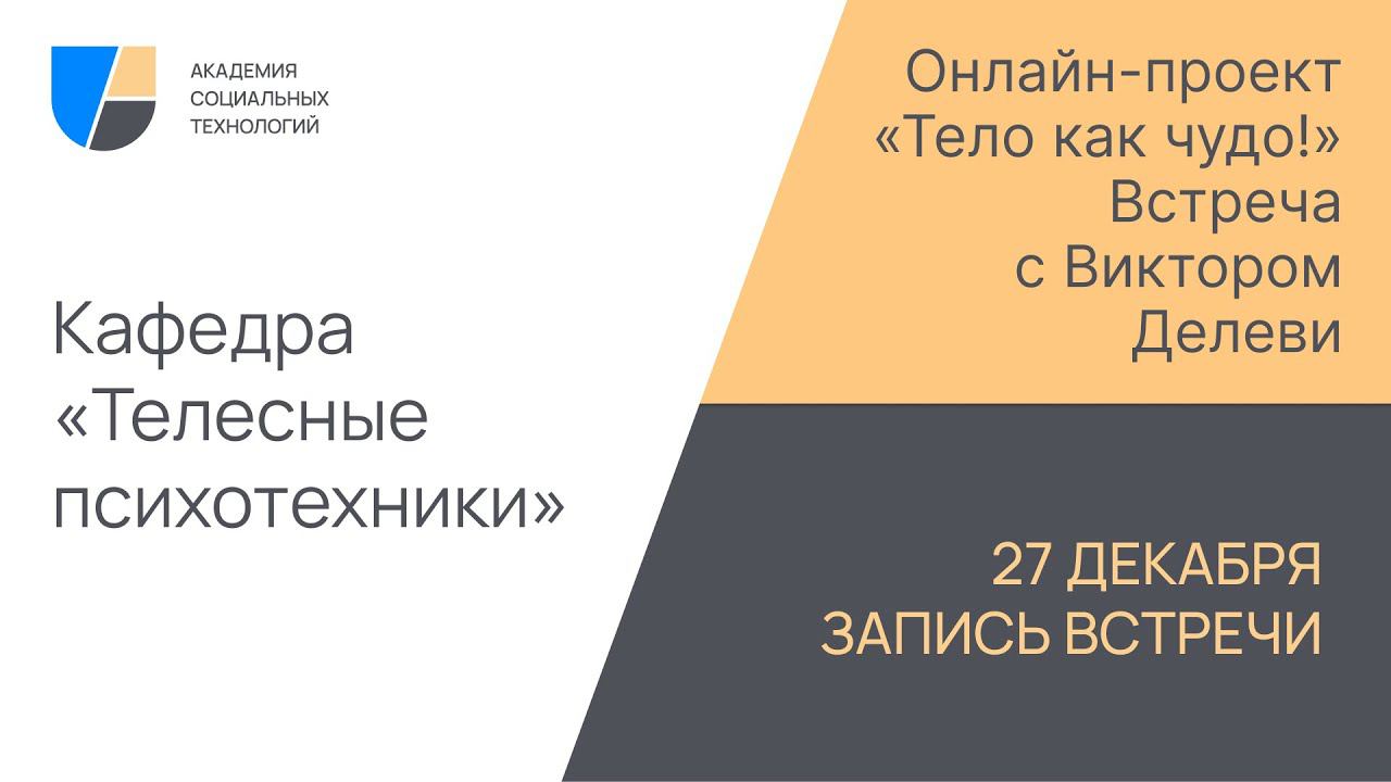Шестая встреча из цикла он лайн встреч "Тело как чудо!" Спикер Виктор Делеви https://ast-academy.ru/academicians/tatana_kovaleva/ ➡️ Сайт Академии - https://ast-academy.ru/ ➡️ Стать экспертом Академии - https://ast-academy.ru/about_expert/ ➡️ Академия в ВКонтакте: https://vk.com/astacademy ➡️ Академия на Яндекс Дзен: https://dzen.ru/ast_academy ➡️ Открытый Telegram-канал Академии социальных технологий: https://t.me/AST_Academy