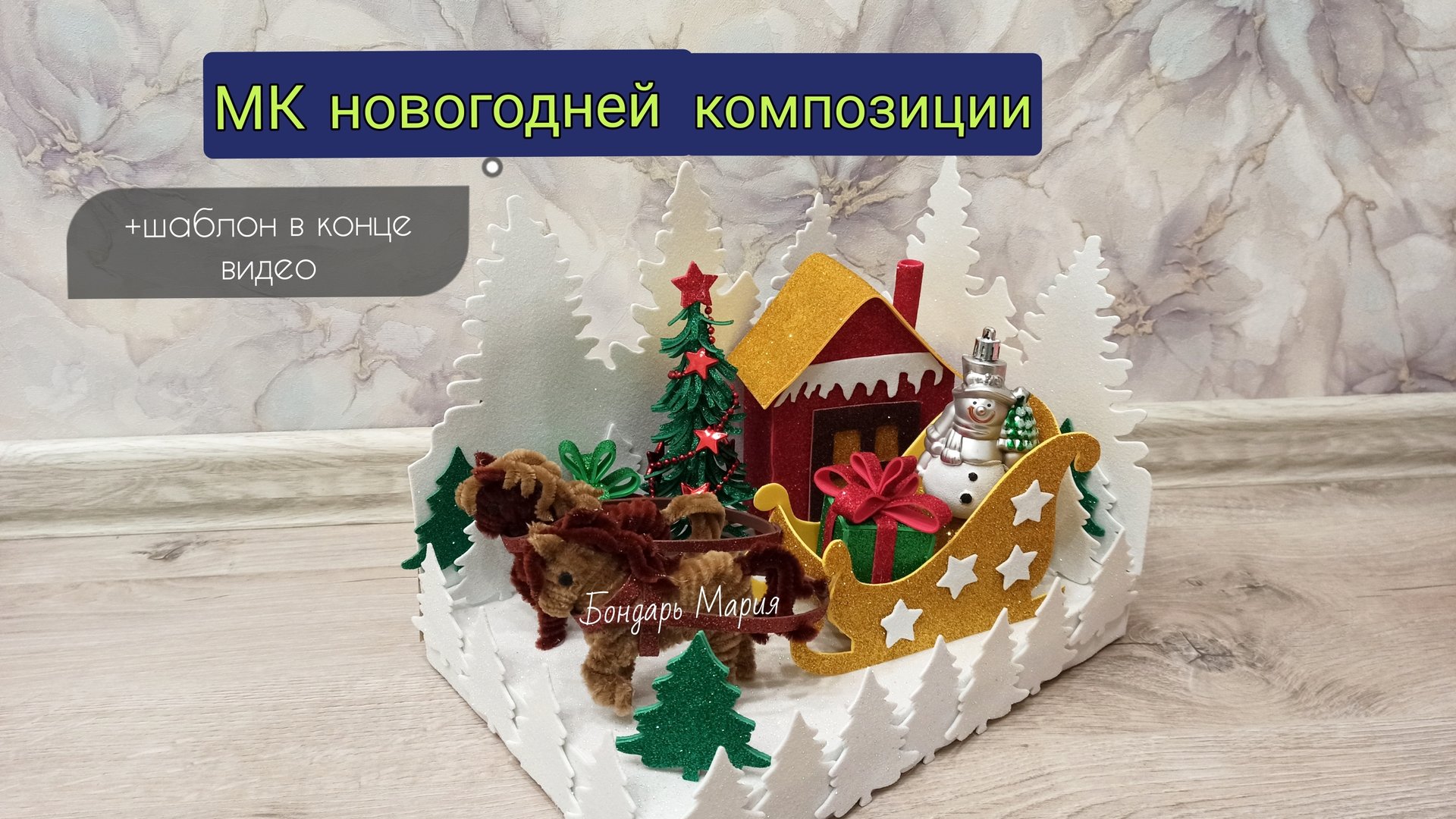 МК новогодней композиции с лошадями, новогодний домик в лесу Автор: Мария Бондарь