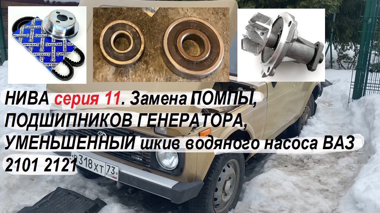 НИВА серия 11. Замена ПОМПЫ, ПОДШИПНИКОВ ГЕНЕРАТОРА, УМЕНЬШЕННЫЙ шкив водяного насоса ВАЗ 2101 2121