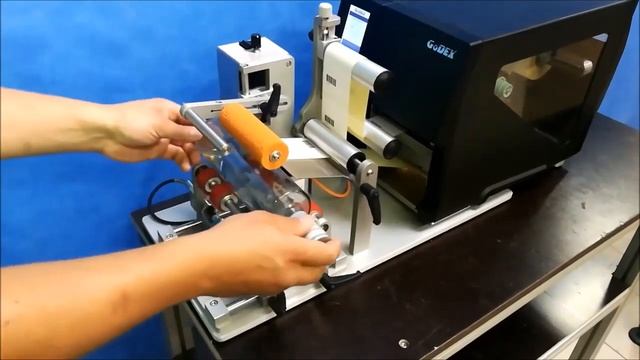 Aplicador semiautomático de etiquetas para tarros, botes o botellas. Posibilidad de imprimir lotes y caducidad con la impresora y etiquetar al mismo tiempo.