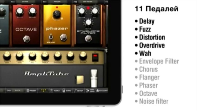 Комбинация инструментального интерфейса и гитарного софта. С помощью AmpliTube iRig, Вы сможете подключить гитару в iPhone/iPod /iPad и начать импровизировать с профессиональным музыкальным мобильным софтом. Простота в использовании и подключении. C помощью iRig подключите свой инструмент, наушники или акустическую систему к интерфейсу через jack и начинайте музицировать. iRig идеально подходит для занятий, вы можете взять это устройство с собой в тур, а также использовать для записи.