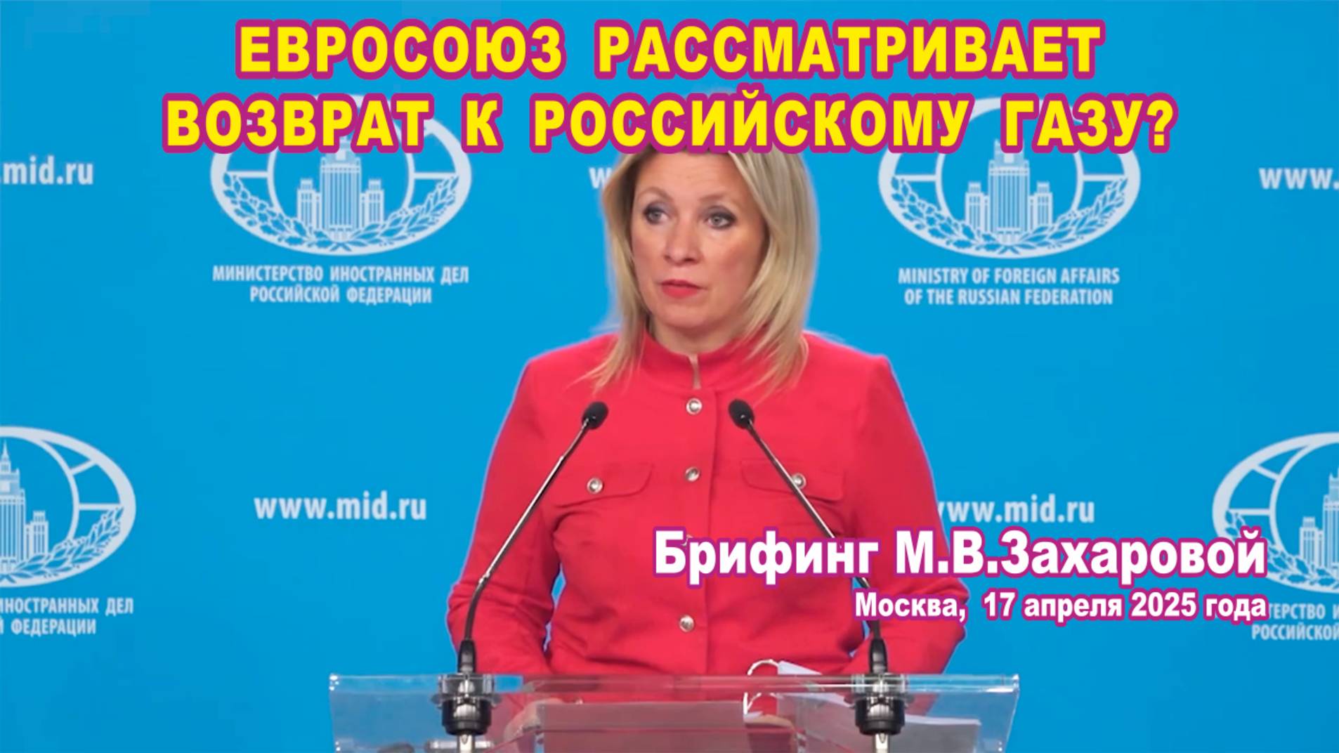 Из брифинга М.В. Захаровой 17.04.2025. Евросоюз рассматривает возврат к российскому газу?