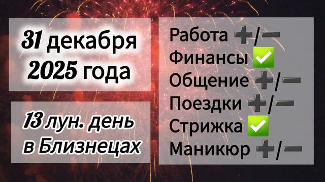 Лунный день 31 декабря 2025 года, гороскоп дня