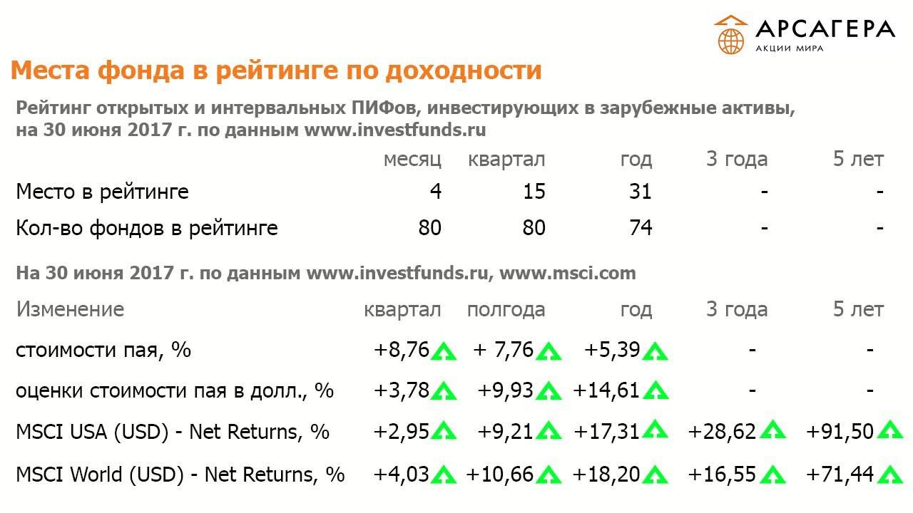 Наши фонды. ИПИФА «Арсагера — акции Мира» Июнь 2017