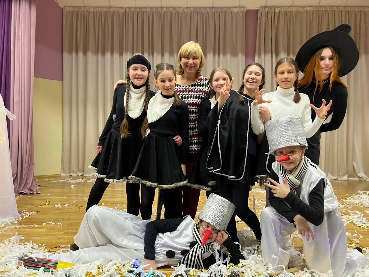 ?Друзья! Поздравляем Вас со Старым Новым годом! ? Детская театральная школа при Московском театральном колледже имени Л.А.Филатова представляет театрализованное представление «Старые – Новые сказки или Обыкновенное чудо» ❣️ Спектакль получился лёгким, динамичным, с юмором. Огромное спасибо режиссеру, сценаристу, хореографу, костюмеру, звукорежиссеру в одном лице Наталье Глебовне, и педагогам за яркие концертные номера, за праздничное настроение и душевный подъём у зрителей и участников.?? ✅ Зрители сразу увидели сказочные декорации, которые сделала художник Е.А.Алексеева, мама одной из участниц концерта ✅ Учащиеся 7 класса с песней «Снег кружится» (преподаватель Вьюхова И.М ) слепили Снеговиков, Гномы из 4 класса оживили их (преподаватель Белова А.В.) и сделали ведущими Новогоднего Концерта Хоть Снеговики оказались неграмотными и драчливыми, но с ролью ведущих они справились блестяще, веселя зрителей своими шутками. И.Чарыков, О.Вьюхов, И.Рудавец, Г.Дубровченко - (преподаватель Полиевская Н.Г) ✅ Музыкальная часть концерта была представлена Е.Горшковой (преподаватель В,В Игонин), В. и С. Катышевыми (преподаватель О.Ю.Новикова, А.Поляковой (преподаватель Б.Л. Калачев) и ярким номером 9 класса (вокальный ансамбль в сопровождении инструментальной группы учащихся) ✅С дебютом можно поздравить учеников 2 класса - танец со снежками (преподаватель Белова А.В.) и учащихся ОР группы (преподаватель Полиевская Н.Г) – потому что настало время учащиеся Что случилось с героями сказок после того, как они были написаны рассказали М.Сарычева, Н.Курникова и А.Прохоренков ✅ И даже показали…продолжение сказки «Кот в сапогах» - И.Купянский, Я.Ступакова, Л.Машин ✅ Учащиеся 6 класса и ОР группы (преподаватель Полиевская Н.Г) были в этом концерте Снеговиками, Снегурочками, Ведьмами, Кошками и просто детьми , солировали со стихотворениями и песнями (М.Немтинова, О.Вьюхова,) (преподаватель Романова И.В,) И конечно, - искрометный финал – с бело-золотой дискотекой и снежками, которыми перебрасывались зрители и артисты #дополнительноеобразование #театральное #Общеразвивающаяпрограмма #детскаятеатральнаяшкола #предпрофессиональнаяпрограмма