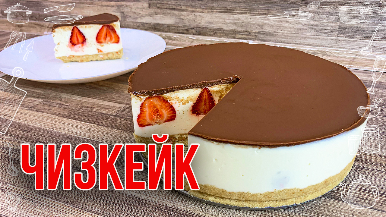 Чизкейк с клубникой (Рецепт из творожного сыра без выпечки) Вкусный и простой домашний чизкейк Рецепт чизкейка: Песочная основа: Печенье - 300 г. Масло сливочное - 80 г. Сырная основа: Желатин - 20 г. Вода холодная - 100 мл. Сливки 30-33% - 300 мл. Творожный сыр - 400 г. (Можно заменить творогом) Сахар - 150 г. Шоколадная глазурь: Шоколад - 100 г. Масло сливочное - 60 г. #чизкейк #чизкейкбезвыпечки #чизкейкрецепт #чизкейкизтворожногосыра #рецепты #рецепт #чизкейксклубникой #домашнийчизкейк