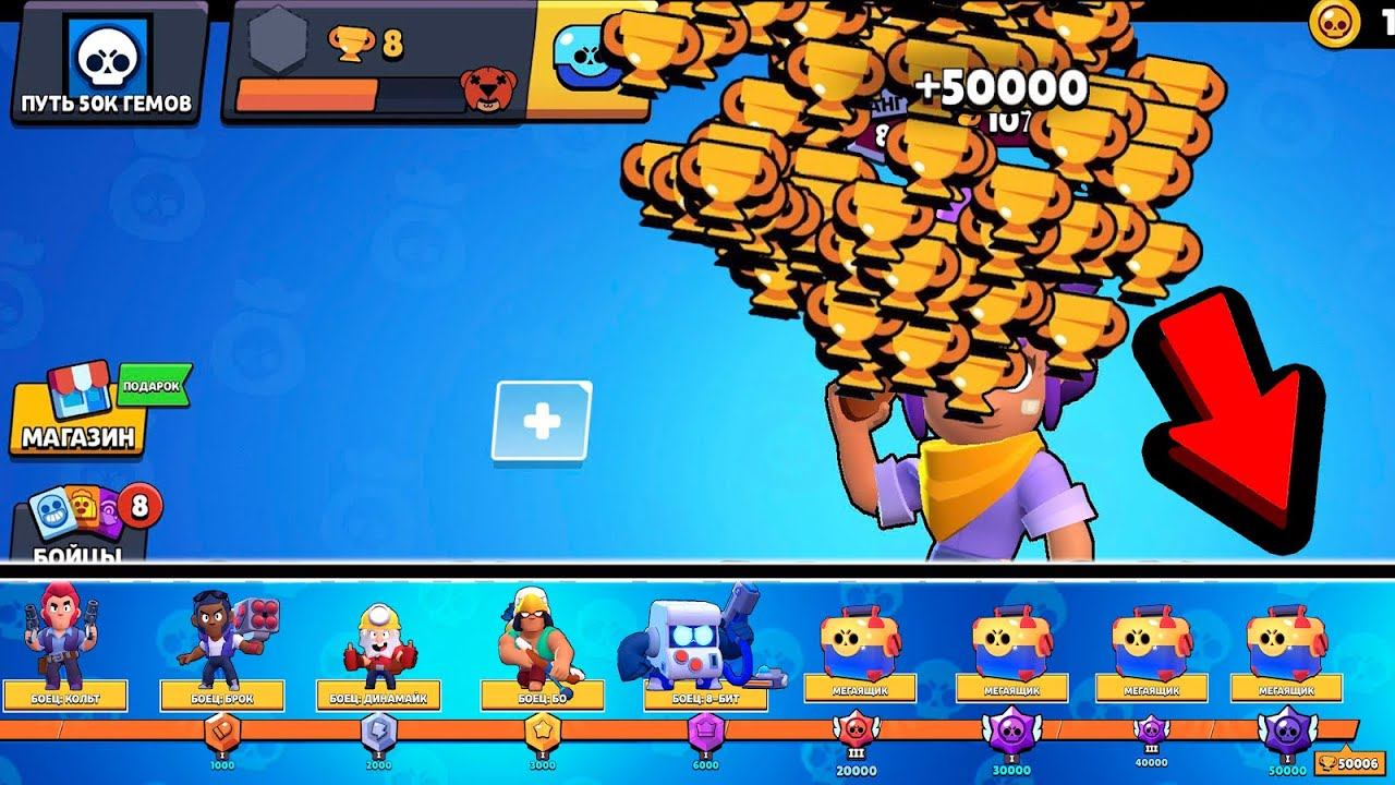НУ ЧТО?! ПОДНИМАЮ 50000 КУБКОВ НА НОВОМ АККАУНТЕ БЕЗ ОСТАНОВКИ В БРАВЛ СТАРС