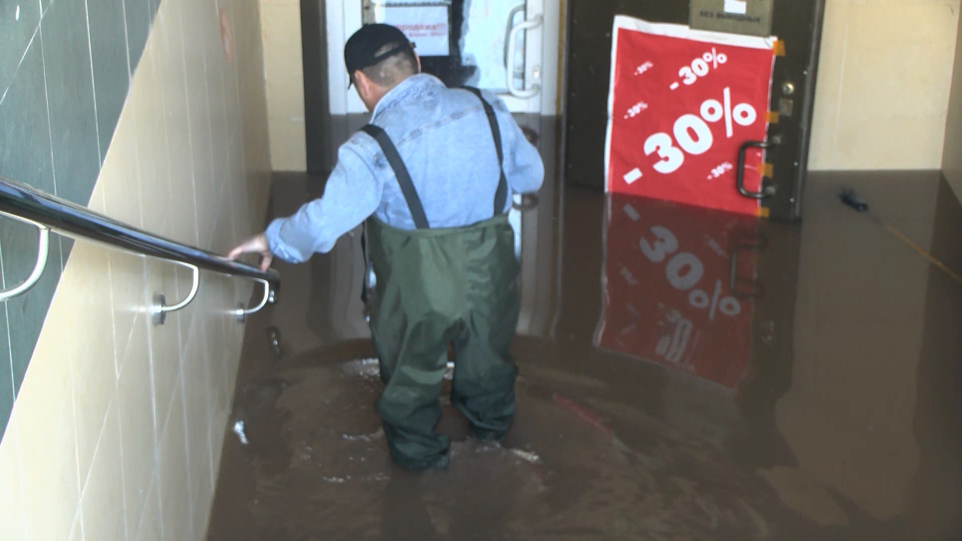 Канализационные стоки затопили магазины на Народном бульваре