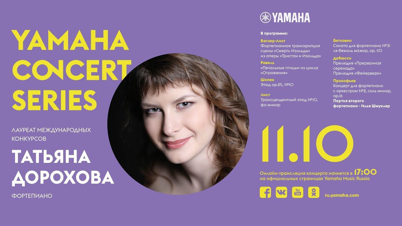 Татьяна Дорохова выпускница МГК им. П.И.Чайковского (класс проф.А.А.Мндоянца), обладатель множества наград Всероссийских и Международных конкурсов, среди которых: Берлинский международный музыкальный конкурс (Гран-при, 2018), Международный конкурс пианистов имени Иоганна Непомука Гуммеля (III премия, Братислава, 2017), Международный конкурс пианистов Сильвио Бенгалли (II премия, Валь Тидоне, 2014), Международный конкурс пианистов премии города Хаен (II премия и приз за лучшее исполнение обязательного произведения, Испания, 2011), Международный конкурс молодых пианистов им. В.В.Крайнева (I премия и специальный приз за лучшее исполнение произведений немецких композиторов Харьков, 2008). Музыкант принимала участие в различных фестивалях: "Великие имена искусства - Владимиру Крайневу посвящается" (2012), "Молодежь играет Шопена" (2010), ."Москва - Минск: мост в будущее" (2008) и др. Татьяна гастролирует в городах России и за рубежом. В настоящее время является ассистентом проф. А.А.Мндоянца в МГК им.П.И.Чайковского и педагогом по классу фортепиано в ДМШ МГКМИ им. Шопена. Татьяна исполнит программу на рояле Yamaha CFX.