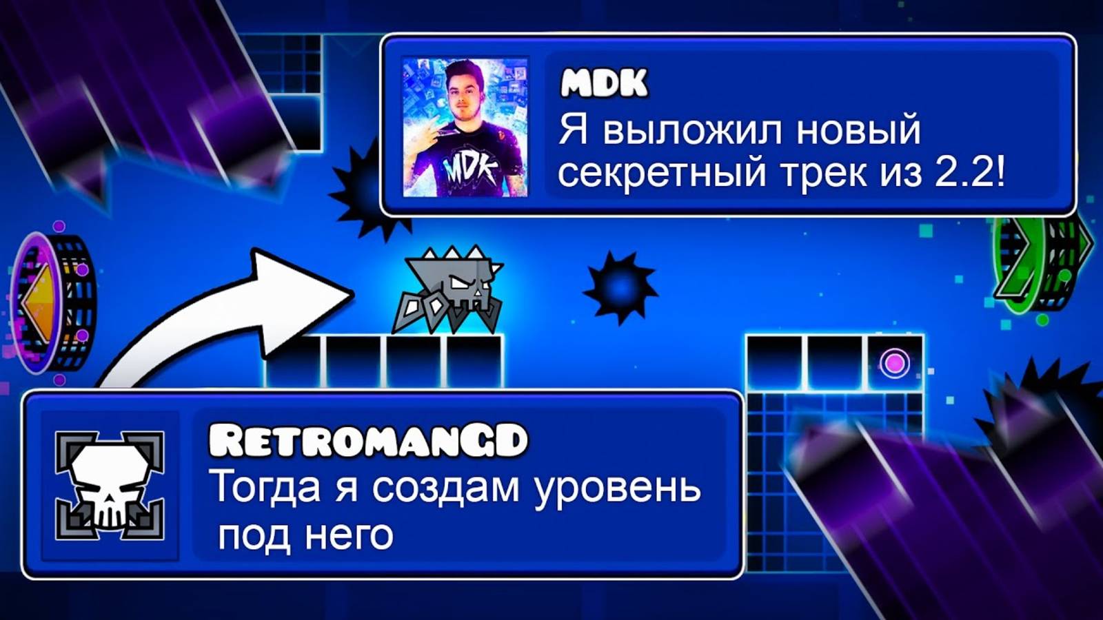 Rainix GDPS - http://rainixgdps.com/ Дискорд сервер RainixGD - https://discord.com/invite/wd3BEeHd4j Привет, думаю ты слышал, что недавно создатель музыки из будущего официального уровня MDK выпустил новый сниппет, своей сверхсекретной песни, ее я нашел в открытом доступе, но почему-то под нее еще никто не делал полноценные уровни, что сегодня я решил исправить, а потому сегодня я создал уровень под музыку сник пика 2.2, а именно под продолжение нового трека MDK Secret song, по этому можно сказать, что такого на ютубе еще никто не делал и надеюсь ты поддержишь данную идею лайком, приятного просмотра! • Стать спонсором: https://www.youtube.com/channel/UCKxhwkteGIk0jK13Hqu2nVw/join • Таймкоды: 0:00 Я Создал самый крутой уровень с музыкой из 2.2 0:51 Рекомендация 1:19 Самое Интересное про Уровень! 2:38 Интересные факты про Левел 3:59 Строю самые Крутые части Уровня 6:09 Показ и Прохождение ЭПИЧНОГО уровня! 7:42 Концовка • Мой дискорд сервер: https://discord.com/invite/htz9Jycfdp • ID этого уровня: 78884441 • Музыка из уровня: https://www.youtube.com/watch?v=N66N87JHnAs • Ник в гд и на gdps editor: retromanGD • Я в инсте: https://www.instagram.com/retroman_yt • Я в ВК: https://vk.com/retroman_yt • По поводу рекламы обращаться в ВК или Инсту, спасибо) • Музыка из видео: Abstrakt - Nobody Else https://www.youtube.com/watch?v=bNXMlIogpXc Music from Tunetank.com VictorWayne - Deep forest (Copyright Free Music) Download free: https://tunetank.com/track/4202-deep-forest Часто ли ты видел качественный контент по игре Geometry dash? Меня зовут Retroman и на этом канале ты увидишь развлекательные видео по ранее упомянутой игре, надеюсь тебе понравится и ты поддержишь меня как начинающего креатора лайком, комментарием и подпиской. Спасибо, что прочитал описание, удачи;) #геометридаш22 #создалуровеньподмузыкуизбудущего #retromangd