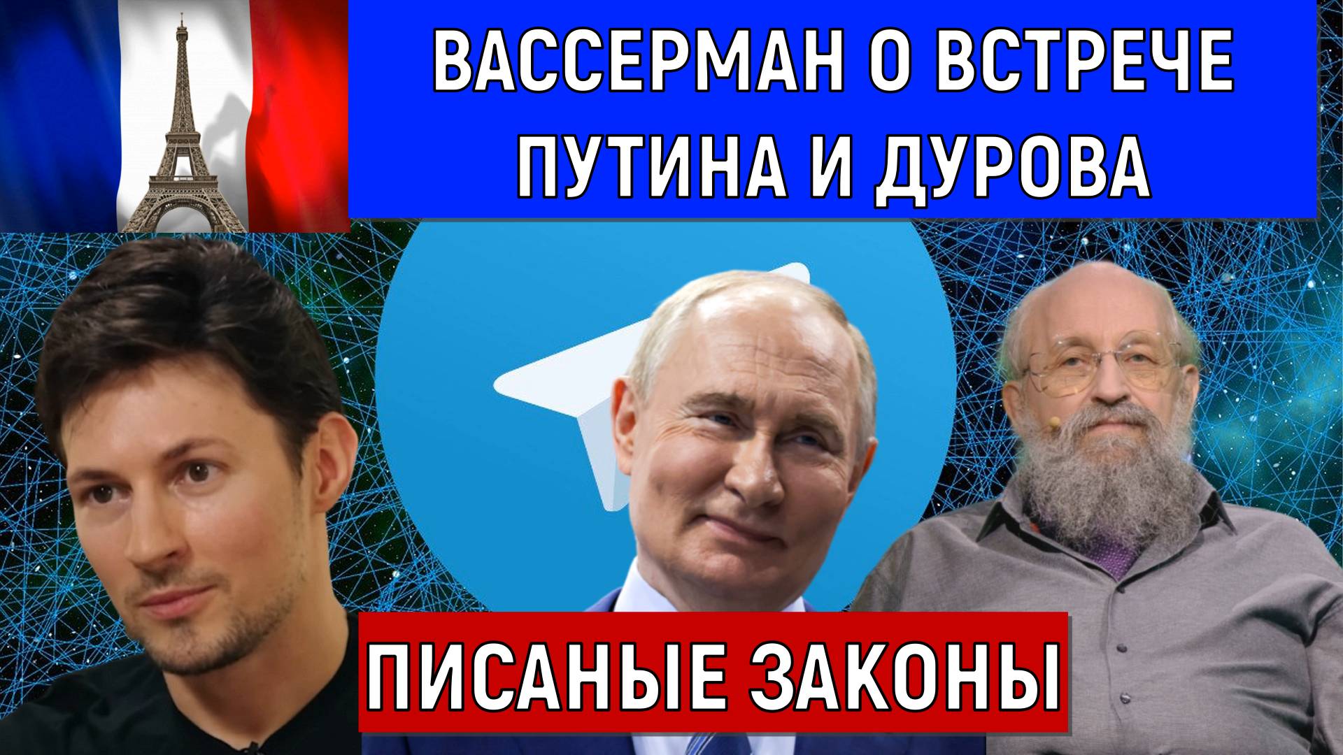 Вассерман о встрече Путина и Дурова. Писаные законы. Павел Дуров российский предприниматель и программист, имеет гражданство Сент-Китса и Невиса, ОАЭ и Франции, долларовый миллиардер. Также основатель из создателей социальной сети «ВКонтакте» и одноимённой компании, мессенджера Telegram. Основатель мессенджера Telegram Павел Дуров был задержан вечером 24 августа жандармами в аэропорту Ле-Бурже в пригороде Парижа. Анатолий Вассерман сказал свое мнение про Павла Дурова и свое видение с мессенджером телеграм. Руслан Михайлов политобозреватель России взял интервью у депутата госдумы Анатолия Вассермана мой официальный сайт ✔️Подписка на сайт 👉 https://ruslanmikhailov.ru/ Анатолий Вассерман депутат госдумы ссылка на каналы https://t.me/wasserman_anatoliy В ролике Руслан Михайлов могут быть использованы фото, рисунки и аудио файлы из открытых источников Google, Яндекс, YouTube Подписаться на мои каналы Поддержать канал - 4100117815002119 (Юмани, ЮMoney ) ✔️Подписка на канал 👉Дзен Канал https://dzen.ru/id/64dccedd72283b41bf5d9ad4 ✔️Подписка на канал 👉Платформа Канал https://plvideo.ru/channel/veCt8BxBFiKM ►ТЕЛЕГРАМ-КАНАЛ -https://t.me/ruslnmikhailov #русланмихайлов#вассерман#youtube#телеграм