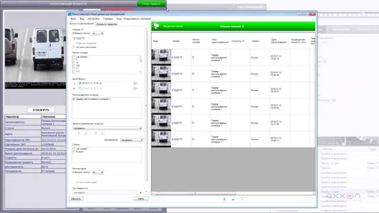 Поиск событий в базах данных распознавателей и формирование базы данных оперативного слежения