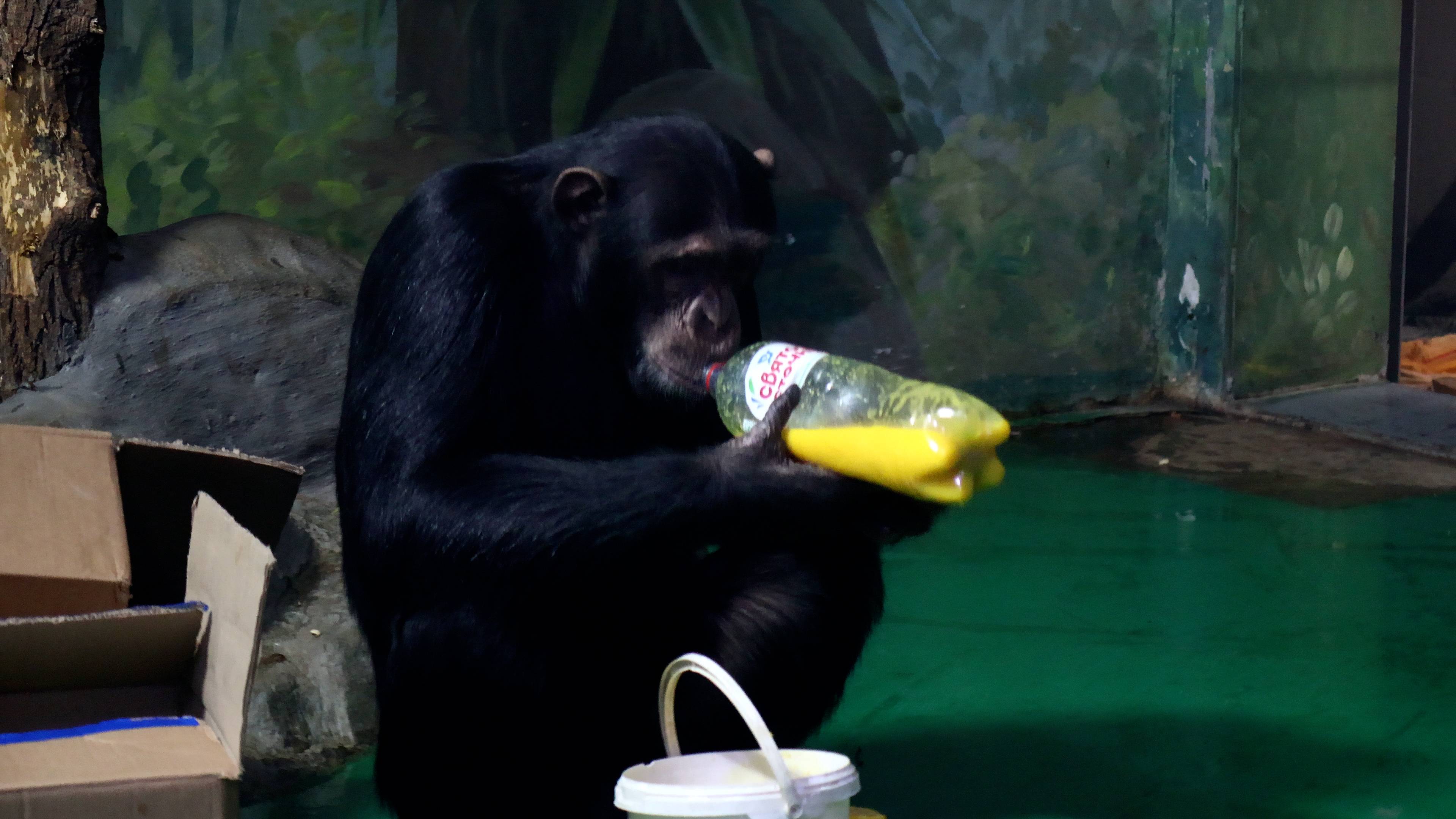 Завтрак у шимпанзе Фили и Люси