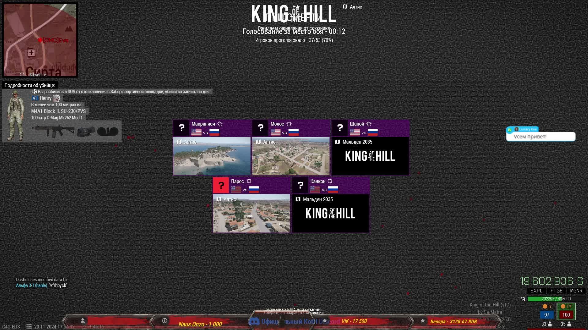 Мой дискорд https://discord.gg/gkzhHWMW7g #KOTH #ARMA3 #Eva #kingofthehill #kothrhs #arma3koth #CodeFourGaming #C4G #arma3 #арма3 #АРМА3 #модRHS #ARMA3RHS #lunacyeva Я на VK Видео https://vk.ru/video/@evachannel Я на Goodgame https://goodgame.ru/channel/LunacyEva Я на Rutube https://rutube.ru/channel/1157921/ Я на Trovo https://trovo.live/Lunacy_Eva Я на Twitch https://www.twitch.tv/lunacyeva Я на Youtube https://www.youtube.com/@LunacyEva/ Для комплиментиков =)) ! С озвучкой на стриме: https://donatepay.ru/don/Eva http://www.donationalerts.ru/r/lunacyeva Или в тихушку - карта Сбербанка: 2202 2062 0178 2799 В чате стрима приветствуется: - Шутки, песни, анекдоты; - Советы и жалобы=) ; - Капсить можно, но учтите бот не зачитывает капс! В чате не приветствуется: - Ругаться матом; - Прямо и косвенно оскорблять других пользователей в чате; - Заниматься пропагандой расовой и национальной дискриминации; - Тут не место для политики. Моя железяка: https://youtu.be/uheJmrrnXE0 Проц.: Intel Core i7-7700K 4200 МГц; Видео: GeForce GTX1080; Мат.плата: ASUS ROG STRIX Z270F GAMING; Память: DDR4 32Гб KINGSTON HyperX FURY; 2 SSD: 256 Гб Samsung 850 Pro, 1ТБ Samsung 870 QVO; Жест.диск: 2000 Гб 7200 rpm WDC; Охлаждение: Corsair Hydro H100i; Корпус: Zalman Z9 Neo Black; Гарнитура: HyperX Cloud II; Клавиатура: A4Tech G800 3X Fast Gaming; Мышь: Logitech G102; Мониторы: Samsung большой и маленький )) Support the stream: https://streamlabs.com/lunacyeva1