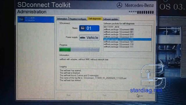 SDConnect C4 selftest with test adapter. Самодиагностика SD Connect C4 с тест-адаптером Mercedes.