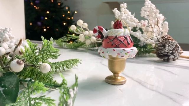 Ёлочное украшение МОРОЖЕНОЕ 'КЛУБНИКА, СЛИВКИ, КАРАМЕЛЬ', полистоун, 10 см, TR21318-2