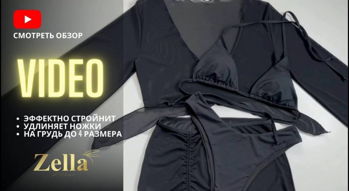 Пляжный комплект: модный купальник бикини черного цвета с накидкой. Видеообзор новинок Wildberries.