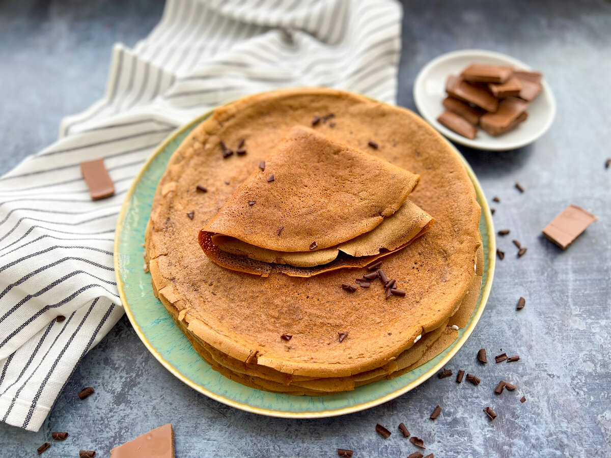 Ищите самые вкусные блины? Так вот же они – шоколадные блинчики! Можно есть просто так или собрать из них блинный торт! Что нужно: мука – 200 г яйца – 2 шт растительное масло – 3 ст. л. сахар – 2 ст. л. соль – щепотка молоко – 300-400 мл какао – 3 ст. л. разрыхлитель – 1 ч. л (при желании)