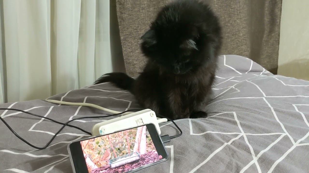 Котей ловит птиц на экране)