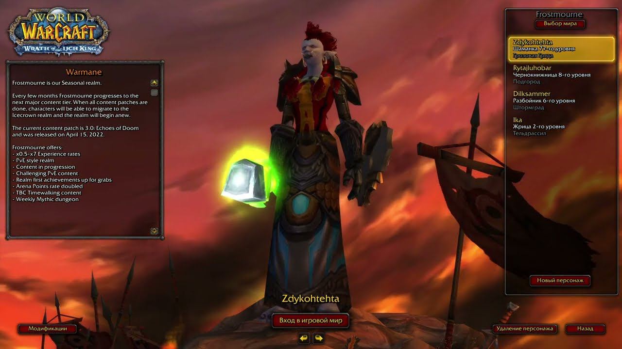 world of warcraft WOTLK Frostmourne Warmane x0.5 77-78 уровень