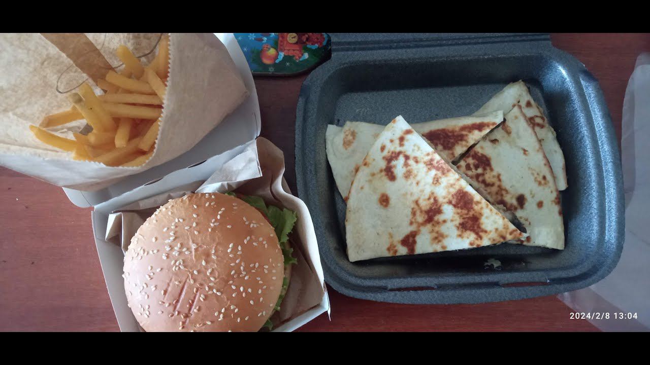 Мукбанг/ Бургер с Говядиной,Кесадилья с Курицей и Грибами,Картошка Фри!
