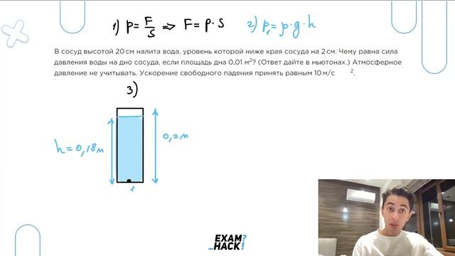 В сосуд высотой 20 см налита вода, уровень которой ниже края сосуда на 2 см - №23047
